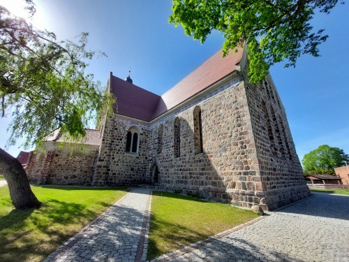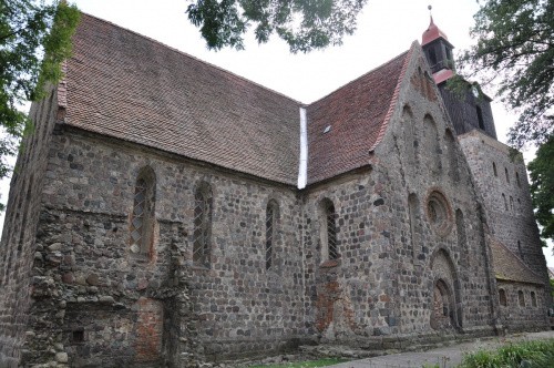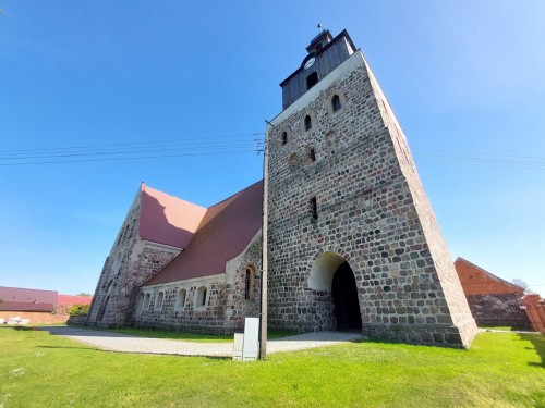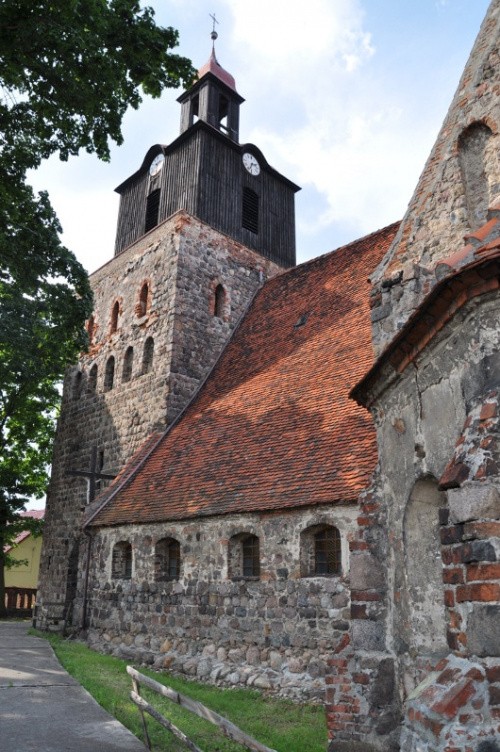Późnoromański kościół z 3. ćwierci XIII wieku. Zbudowany na planie krzyża z granitowych ciosów. Bryła romańska zachowana dość dobrze. W latach 50-tych na tynkach istniała jeszcze ryta dekoracja.