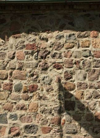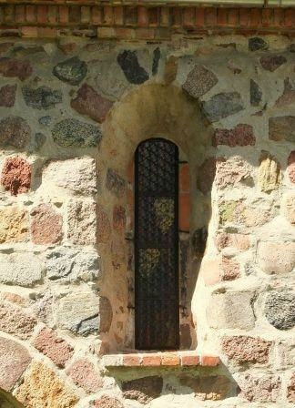 Z pierwotnego detalu zachowały się 2 portale: zachodni i południowy (zamurowany) oraz oryginalne okno w elewacji południowej, widoczne są także ślady po drugim oknie w ścianie południowej. (fot. czerwiec 2013)
