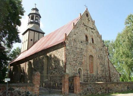 Zbudowany w 4 ćw. XIII wieku (ok. 1283) jako salowy, założony na planie prostokąta, bez prezbiterium, z wieżą zachodnią tej samej szerokości co nawa. Ściany wzniesione są z dokładnie obrobionych kwadr granitowych ułożonych w regularne warstwy z ukośnie profilowanym cokołem. Od strony północnej dobudowano zakrystię sklepioną połową sklepienia kolebkowego.