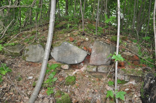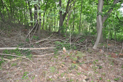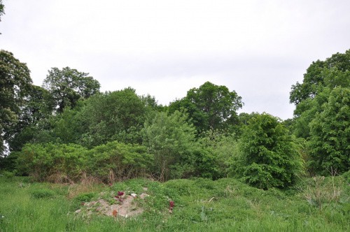 Są jeszcze czytelne fosy wokół prostokątnej platformy na której stał dwór i zabudowania gospodarcze