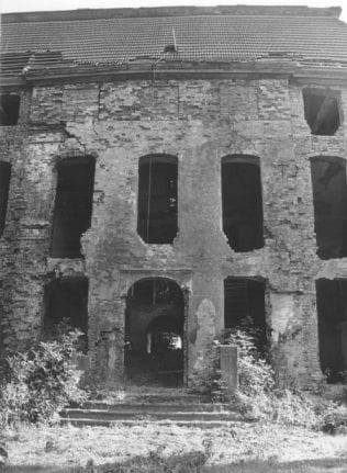 Jedno z ostatnich zdjęć pałacu w Suchej (ruiny) z maja 1981 r., foto Fr. J. Lachowicz