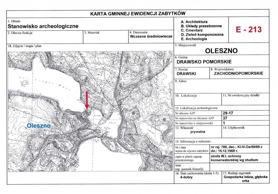 W lesie, nieopodal wsi znajduje się grodzisko nizinne, koliste, z wysokimi wałami i fosą. Warstwa kulturowa i materiał archeologiczny, pozwala datować na wielofazowy okres uzytkowania obiektu: halsztacki, wczesnośredniowieczny i średniowieczny