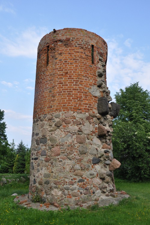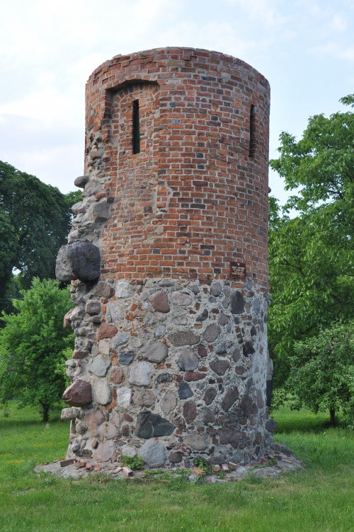 jedyna pozostałość murów miejskich w Baniach to baszta zachowana w ogródku plebanii, ksiądz problemu nie robi z jej obejrzeniem