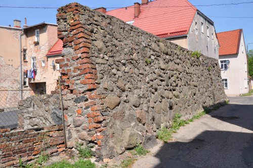 Drawsko Pomorskie otrzymało prawa miejskie 8 marca 1297, chociaż gród i osada istniały już od VII wieku. Obwarowania murowane zaczęto wznosić w XIV wieku. Zostały one wzniesione z kamienia i cegły, z trzema kamiennymi bramami wjazdowymi; od północy Nową (wzniesiona najpóźniej, bo w I połowy XVII w.), od zachodu Wysoką i od południa Niską. Po obwodzie murów, w ich narożnikach umieszczono cztery wieże obronne (prawdopodobnie na rzucie kwadratu). Mury umocniono basztami. Od strony północnej było ich sześć, od wschodniej dwanaście, później jedna została wyburzona, od południa było prawdopodobnie osiem baszt, a ciąg zachodni posiadał jedenaście lub dwanaście baszt. Pierścień murów otoczono wałami i fosami, które zasilała rzeka Drawa, a w części południowej kanał przekopany w połowie XIV w. Baszty zostały przejęte przez poszczególne cechy, odpowiedzialne za obronę miasta. W 1916 r. powstał projekt odbudowy i rewaloryzacji zachowanych fragmentów murów (Niessen, 1897), mający na celu zabezpieczenie istniejącej substancji, uzupełnienie ubytków oraz budowę drewnianych ganków obronnych, jednak z niewiadomych nam dziś przyczyn nie został ów projekt wcielony w życie. Do dziś, z liczącego 1720 m ciągu średniowiecznych obwarowań miasta, dotrwały dwa fragmenty. Przy ul. Cmentarnej fragment długości ok. 10 m i wysokości 2m, murowany z cegły i kamienia. Drugi fragment przy dziedzińcu Szkoły Podstawowej nr 1 od strony rzeki Drawy, murowany z ciosów kamiennych długości ok. 15 m. (źr: http://www.drawsko.pl/)