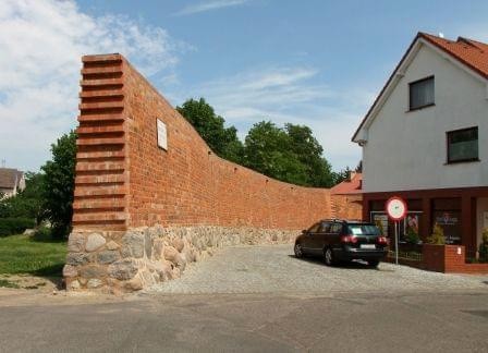 W 1262 Warcisław III podpisał dokument lokacyjny dla miasta na prawie lubeckim, na mocy, którego istniejące osiedle w okolicach dolnego biegu rzeki Regi otrzymało prawa miejskie. Budowę murów miejskich rozpoczęto w XIII wieku, zakończono w XIV wieku. Całkowita ich długość wynosiła ok. 1785m. Dodatkowo wzmocnione były wałami i fosą. Owalna linia murów obronnych opasywała dawniej obszar starego miasta, o długości 650 m i rozpiętości od 250 – 350 m . Miejscami osiągały – 5 m wysokości. W XIX w. Kiedy średniowieczne fortyfikacje stały się nieprzydatne - rozpoczęto ich rozbiórkę. Obecnie z murów tych, pozostały niewielkie fragmenty z dwiema bramami i basztą.