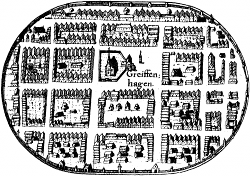 Plan Gryfina z Wielkiej Mapy Księstwa Pomorskiego Lubinusa z 1618 roku
