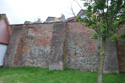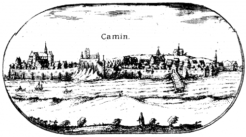 W IX–XI w. była tu osada rybacka i portowa, która otrzymała prawa miejskie, lubeckie z rąk księcia Barnima w 1274 roku. Juz XII wieku miasto posiadało umocnienia ziemne w postaci wałów. W pierwszej połowie XIV wieku zaczęto budować mury miejskie. Wzniesiono wokół miasta osiem wież obronnych, w tym trzy od strony Zalewu (rybacka, miejska, maślana). Od lądu otaczały miasto: mur, pięć wież i dwie fosy. Długość murów wynosiła pierwotnie około 1040 metrów. Umocnienia te nie obejmowały katedry i zabudowań kapitulnych. Biskup kamieński obwarował swe posiadłości osobnym murem. Miasto zostało poważnie zniszczone w XVII wieku. Do czasów obecnych zachowały sie duże odcinki murów wraz z bramą i basztą.