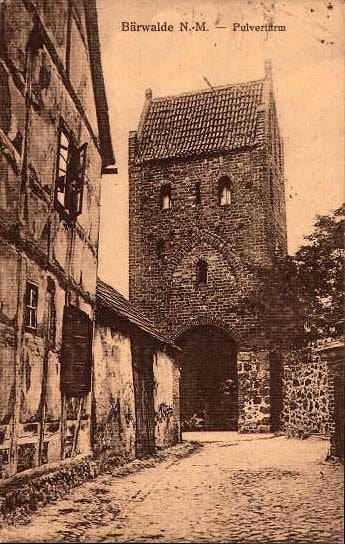 Baszta Prochowa na starej pocztówce (zbiór własny). Widoczna także na jednym z umieszczonych wcześniej zdjęć. Kiedyś teren był zabudowany do samej baszty, dzisiaj jest tam pusty plac.