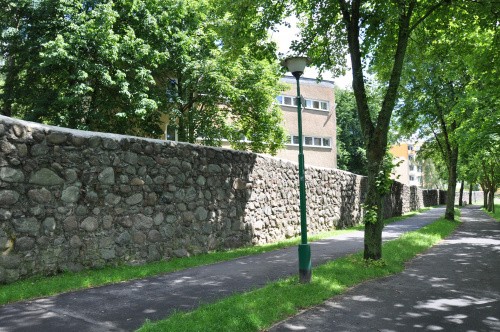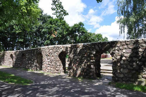 zachowany odcinek muru od strony jeziora, czerwiec 2014