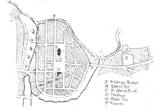 Średniowieczny plan Sławna wg Bottgera z 1898 roku