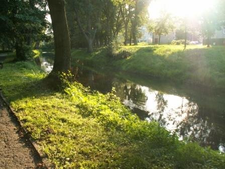 6. ZEWNĘTRZNA STREFA OBRONNA - Miasto otaczał od południa kanał odchodzący od rzeki Wieprzy, a łączący się na północy z rzeką Moszczenicą. Ponadto dodatkową obronę stanowiły podmokłe, trudno przejezdne tereny nad Wieprzą. Na widoku Lubina widoczna jest biegnąca przy zewnętrznej stronie linii muru droga moszczona drewnianymi brusami. Przez kanał i rozlewiska Wieprzy prowadziły do miasta dwa mosty - do Bramy Koszalińskiej i Łąkowej. Prawe ramię kanału zachowane jest do dziś. Ślad po lewym wschodnim ramieniu kanału w postaci miałkiego piasku rzecznego widoczny był wyraźnie w czasie prowadzonych w latach 1973/74 prac ziemnych przy budowie magistrali wodociągowej. Podziękowania dla Czarka Maruszaka, autora opisu.