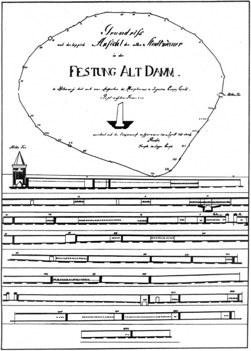 Podziękowania dla Bogdana Flisiaka za udostępnienie materiałów ze strony: http://www.alt-damm.neostrada.pl oraz za dodatkowe zdjęcia murów na archiwalnych pocztówkach