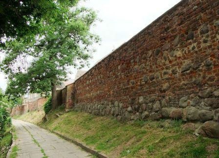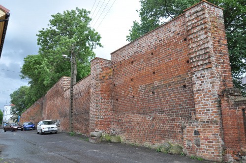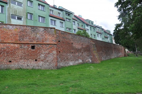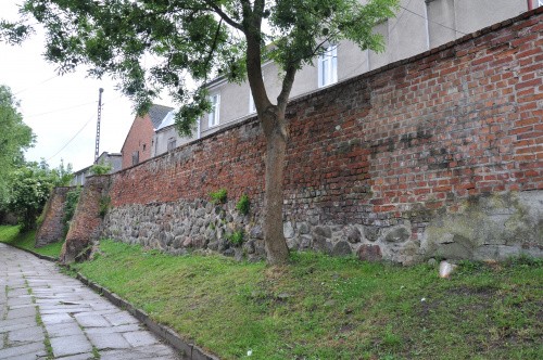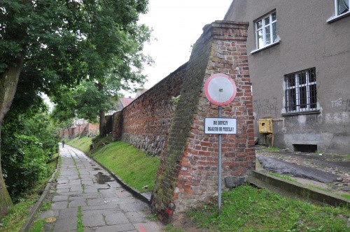 Zaczynamy przy zamku. Długi odcinek muru ciągnie się wzdłuż ul. Wąskiej aż do Baszty Kaszanej.