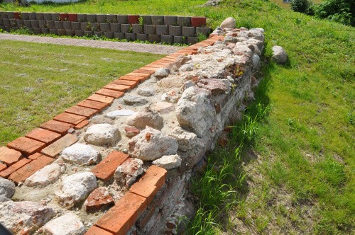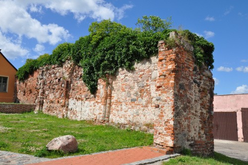 W Wolinie z murów wiele się nie zachowało, jedyny fragment w większej okazałości z dwóch ujęć