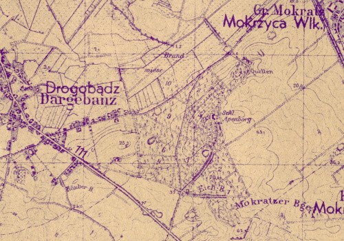 W połowie drogi między Dargobądziem, a Mokrzycą, na wzgórzu na trasie niebieskiego szlaku, w lesie znajdują się nikłe relikty średniowiecznego zamku "Żurawice" (Apenburg), przebudowanego na pałac. Został on zniszczony w 1945 roku. Wiadomo mi tylko, że zamkiem i okolicą, od 1324 roku, władał ród Apenburg.