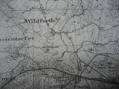 Aby odpowiedzieć na podstawowe pytania należałoby zlokalizować gdzie zamek ten był postawiony. W opisach mówi się wyraźnie, że wybudowano go w międzyrzeczu rzeki Drawy ( niem. Drage ) i jej dopływu rz. Głębokiej ( niem. Trabunfließ – Gronowa Rzeczka). Niestety nie istnieją polskie mapy wskazujące „imiennie” miejsce jego usytuowania. Doświadczenie uczy, że Niemcy mieli dobry zwyczaj nazywania charakterystycznych miejsc terenowych i umiejscawiania ich z tymi nazwami na mapie. Należało więc zdobyć odpowiednią mapę tych terenów sprzed 1939 r. Z pomocą przyszli pasjonaci z Kalisza Pom. Pan Krzysztof Ignaszewski dostarczył mapę i już pierwszy rzut oka na „widły” Drawy i Głębokiej udowodnił że myśl była słuszna. Nie było wątpliwości, na owej mapie, na cyplu utworzonym z dwóch rzek, wyraźnie widniał mały kwadracik umiejscowiony na określonym topograficznym znakiem wzniesieniu. Oczywiście miejsce to otrzymało nazwę- „Alter Burgwall” ( stary wał zamkowy, stary wał obronny )- co jedynie upewniło, że tu był stary zamek. Potwierdzeniem trafności dociekań stał się odnaleziony w archiwum ( Koła Nr 21 Stowarzyszenia Saperów Polskich ) artykuł podpisany przez Ericha Kulke z 1935 r. pt „Das >>feste Haus <