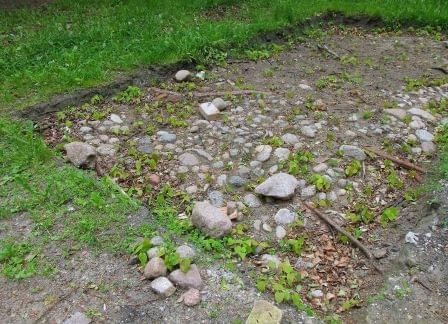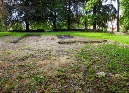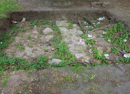 Pozostałości po wykopkach. 2 relikty muru i coś jakby bruk. Poza tym stan jak na zdjęciach Becika, więc nie ma sensu ich powielać. (fot.czerwiec 2015)