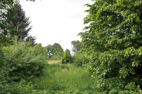 miejsce po zamki, częściowo zniwelowane pod fabrykę zapałek, żadnych pozostałości w terenie