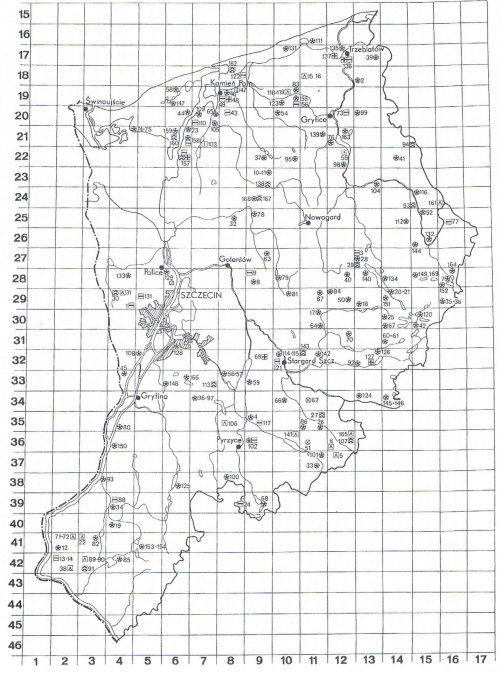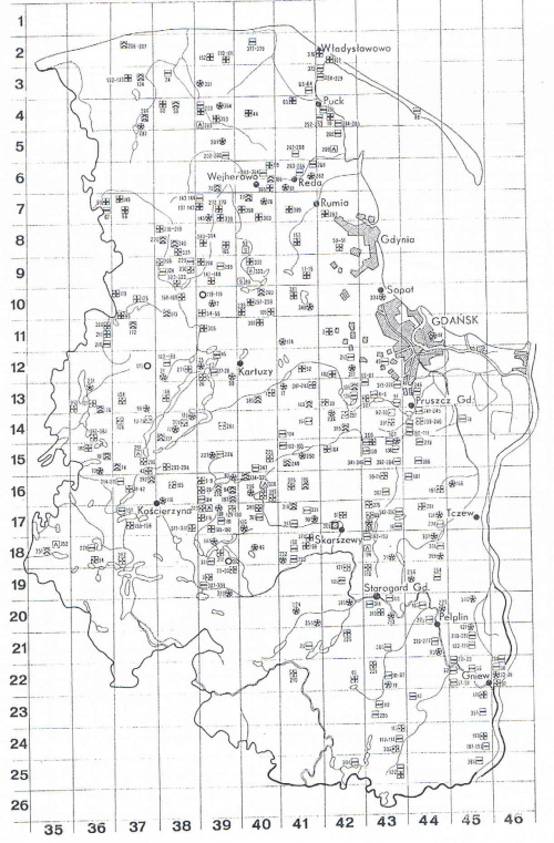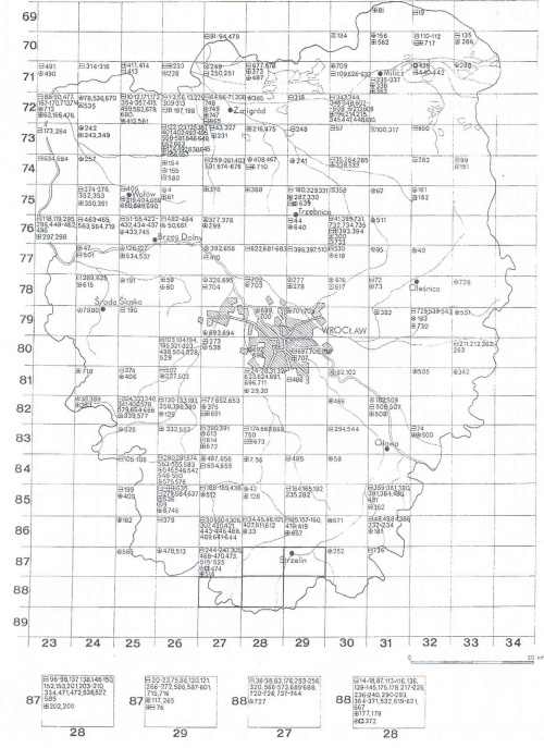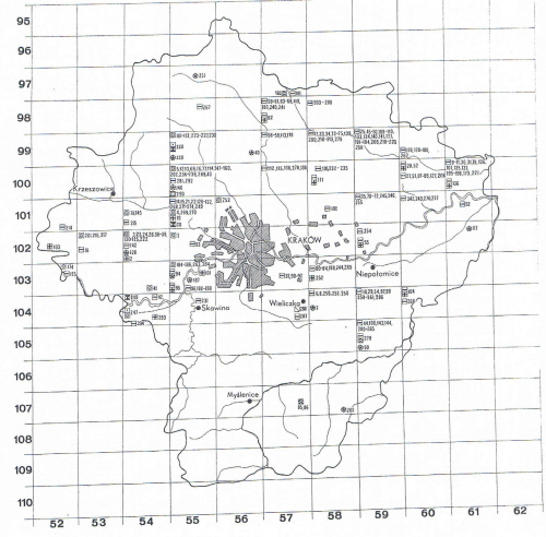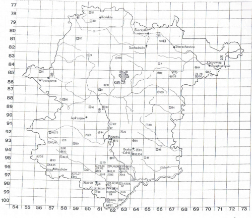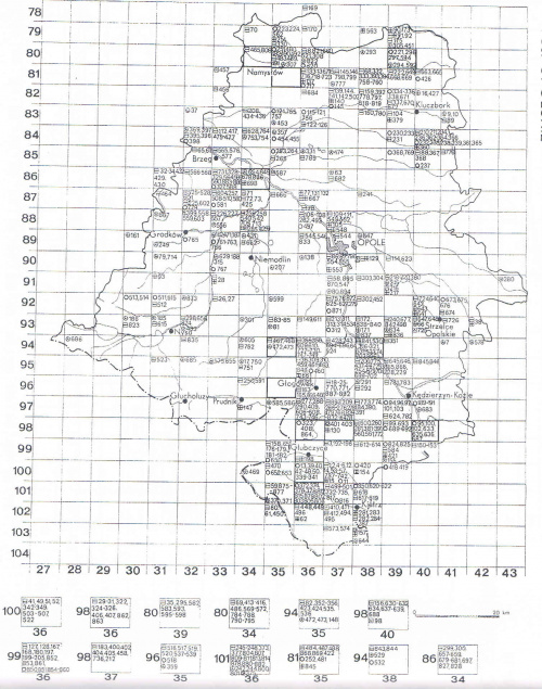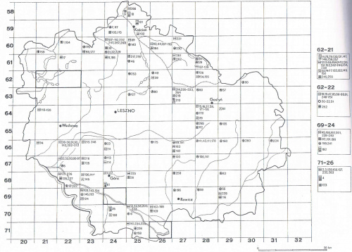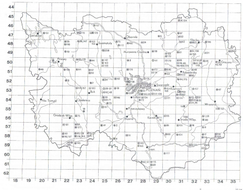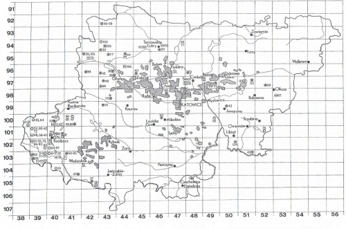 Rzecz, która warto udostępnić maniakom 😉 siatka Archeologicznych Zdjęć Polski, częściej znana pod nazwą AZP. Mimo, ze zmienił sie układ województw to numeracja pozostała niezmieniona. Oczywiście zmienia się ilość nanoszonych na nią obiektów. Przedstawiana poniżej pochodzi z końca lat 90-tych XX wieku, czyli jeszcze jest naniesiona na województwa wg starego podziału administracyjnego.