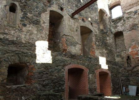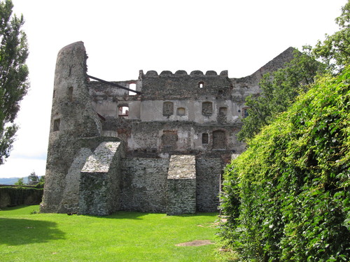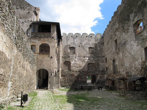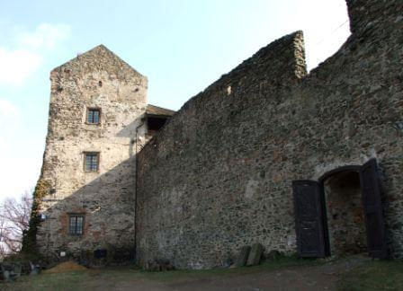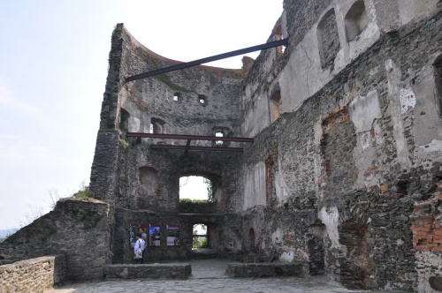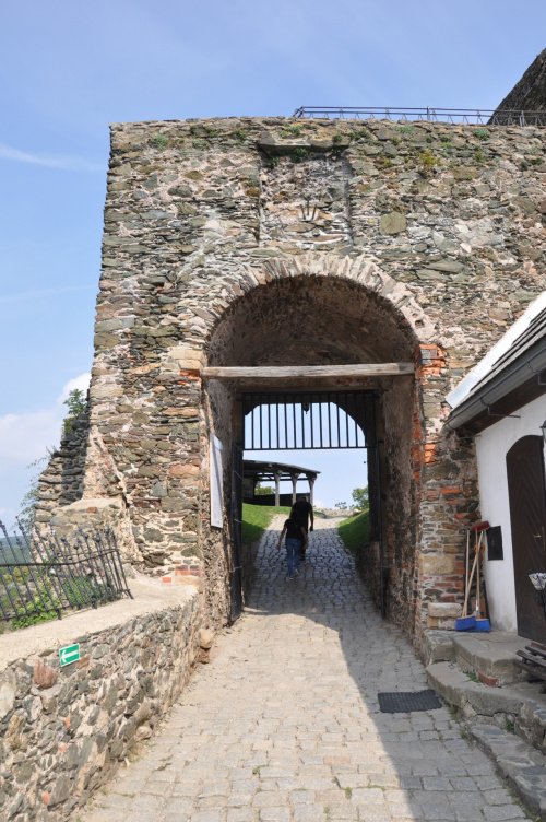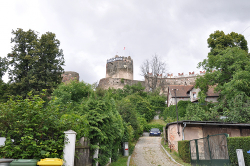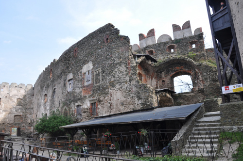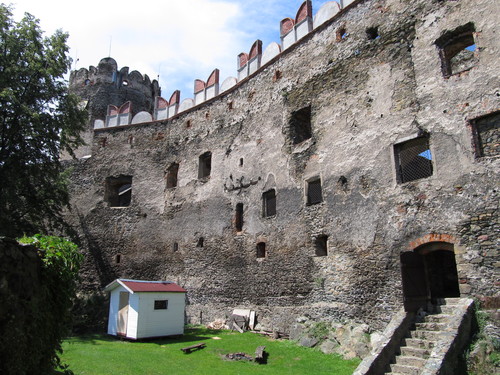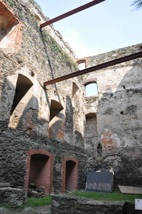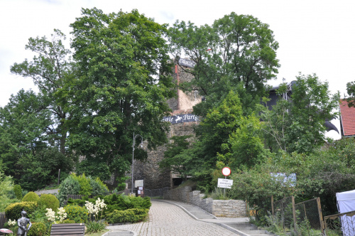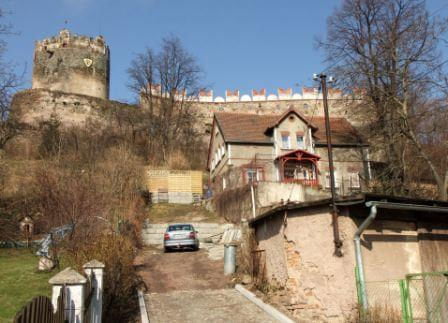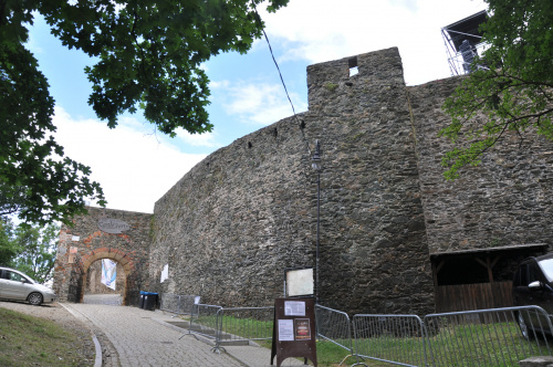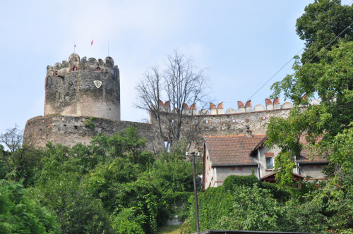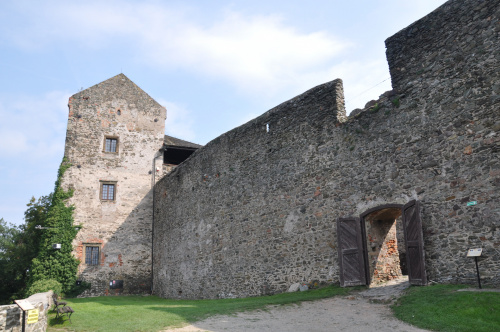 Zaparkować można przy ośrodku z basenem (możliwy nocleg na polu kempingowym). Stamtąd już blisko do zamku, widok z ulicy. Widać, że ogarniają porządki powoli. Co roku odbywa się tam turniej rycerski, zazwyczaj pod koniec czerwca.
