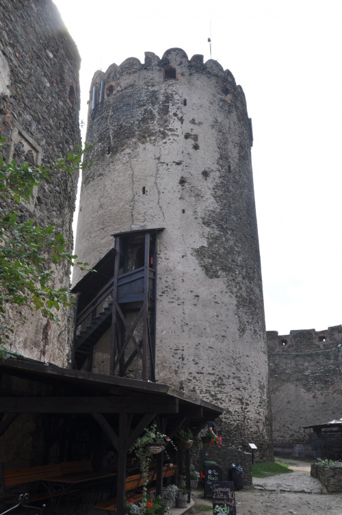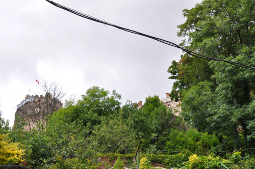 Z tylnej wieżyczki widać w tle zamek w Świnach.