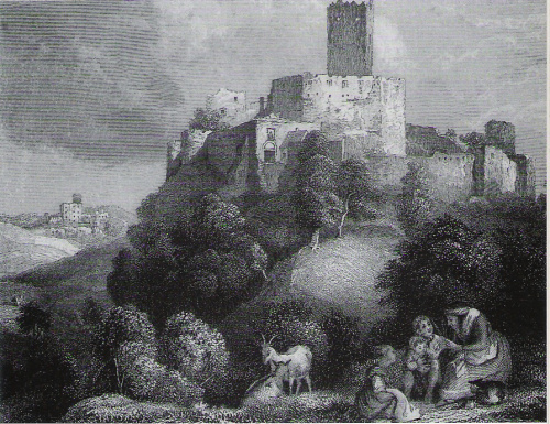 widok zamku od południa w połowie XIX wieku wg L.Richtera i A.H.Payna