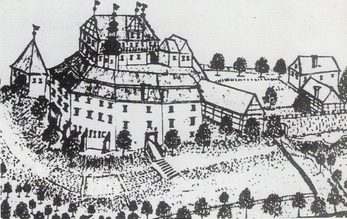 zamek na rycinie Wernera z połowy XVIII wieku
