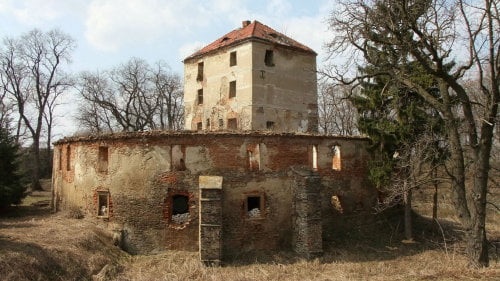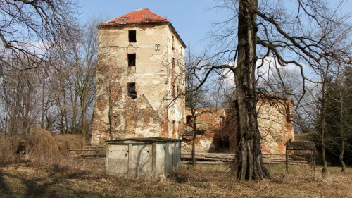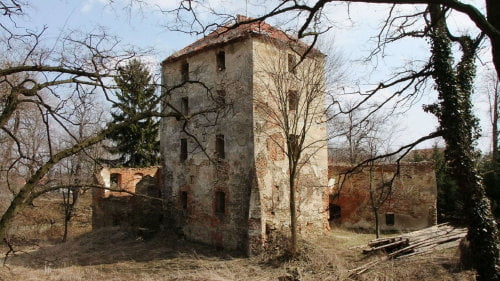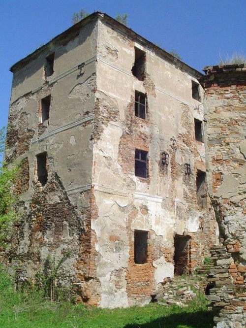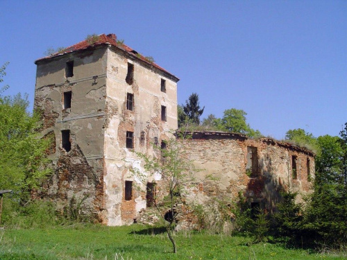 Na miejscu grodziska średniowiecznego z XII wieku wzniesiono w końcu wieku XIV obronną wieżę mieszkalną. Pierwotnie drewniana siedziba rycerska powstała w początku XIII wieku jako założenie drewniano-ziemne należące do Alberta I. Na miejscu tego założenia pod koniec XIII wieku wzniesiono częściowo murowane założenie. Składał się z kamiennego muru obwodowego i drewnianej zabudowy dziedzińca. Mur obronny miał kształt półkola, od południa znajdował się wjazd. Całe założenie otoczone było fosą. Na początku XIV wieku powstała murowana, czterokondygnacyjna wieża mieszkalno-obronna na planie prostokąta o wysokości 18m. W XV wieku dobudowano do niej budynek przy murze wschodnim. Po 1502 roku zamek należał do Seidlitzów którzy wybudowali nowy pierścień murów wokół fosy. W kolejnych wiekach zamek należał do kilku rodów. W 1841 roku siedziba mieszkalna spłonęła. Odbudowano ją jednocześnie niwelując fosę i wały. Uszkodzony w 1945 roku, obecnie opuszczony i w stanie niszczejącym.