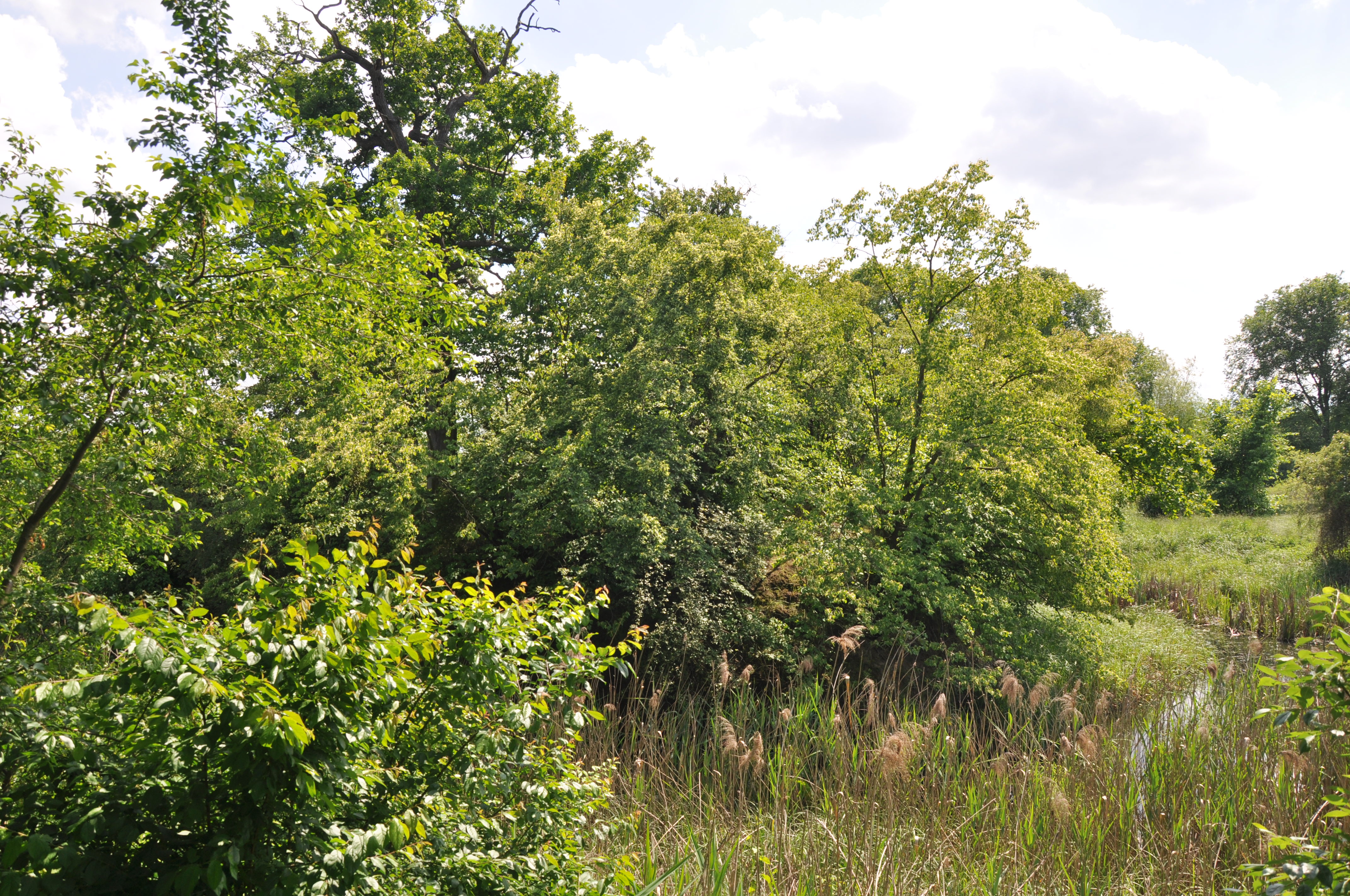 strasznie zarosło, wejśc nadal nie ma jak, fosa nadal mokra, do tego zarośnięta