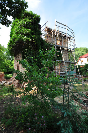 We wsi na płaskim równinnym terenie znajduje się wieża rycerska pochodząca z XV wieku. Zachowaną do dziś budowlę na podstawie analizy materiałów budowlanych datowano najwcześniej na koniec XVI wieku. Wieża mieszkalna zbudowana jest z kamienia na planie kwadratu o boku długości 7,5m. Piwnica kryta jest kolebą, ponad nią są dwa piętra z których pierwsze przekryte jest sklepieniem krzyżowym, drugie drewnianym stropem. Elementem młodszym jest dostawiona do ściany wschodniej klatka schodowa założona na planie koła, zbudowana z kamienia, miejscami uzupełniona cegłą.