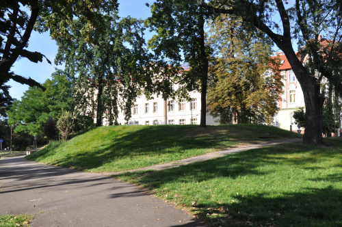 Jednak zamek znajdował się poza obrębem murów miejskich, miejsce po zamku