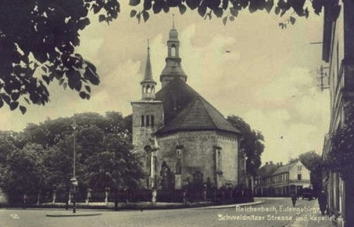 Kościół Maryi Matki Kościoła na ulicy Świdnickiej wzniesiony w miejscu zamku na przedwojennej pocztówce