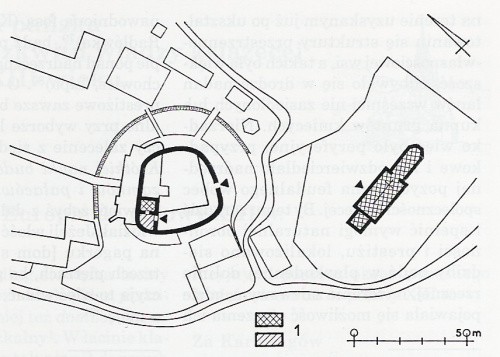 położenie zamku względem kościoła, 1-budowle średniowieczne