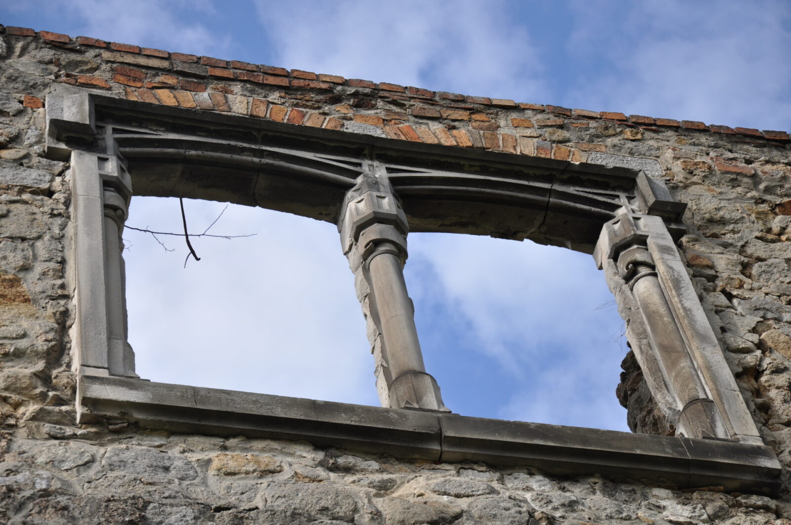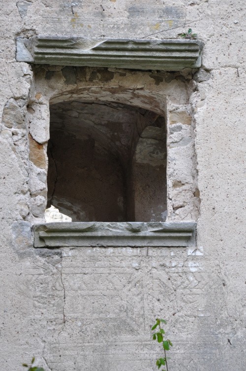 | O tynku w tej chwili już nie można mówić, natomiast co ciekawe, w murze obronnym znajdują się potłuczone fragmenty ozdobnej kamieniarki z jeszcze starszej budowli (?) - ruina ma wyjątkowy klimat kontaktu z nawarstwioną historią. |