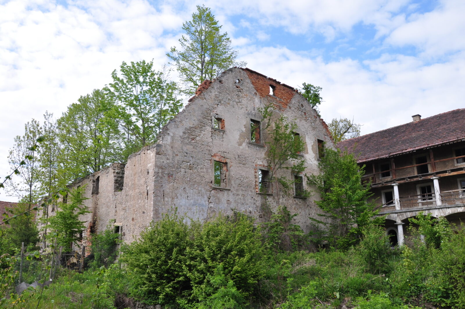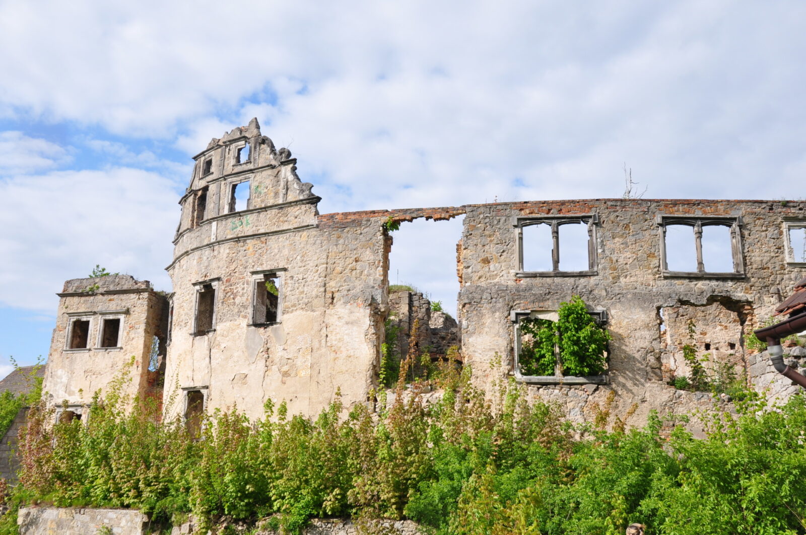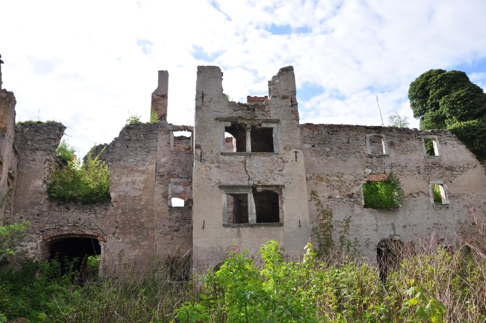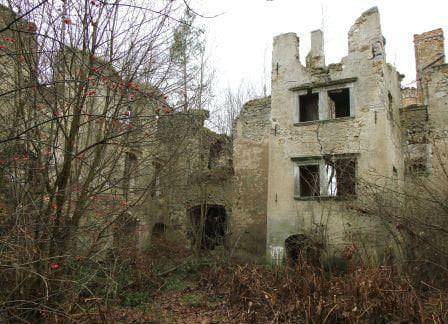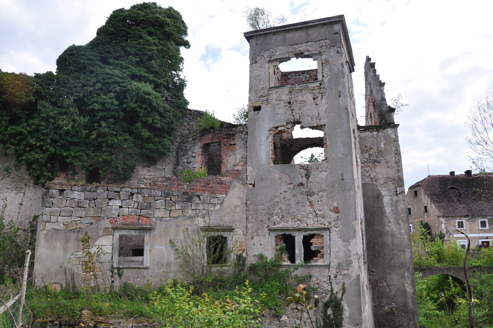 Zamek spłonął w 1945 roku w wyniku pomyłki niemieckiego lotnika, który przypadkowo go zbombardował. Obecnie widok ruin sprawia przygnębiający widok, mimo że zamek położony w centrum wsi stał się szczelnie zasłonięta przez roślinność enklawą. Miejscem z którego zrobiono wysypisko śmieci, toaletę oraz melinę dla miejscowych żuli. By dojść do środka ruin trzeba przedostać się przez sterty śmieci, metrowe chaszcze i co chwile można napotkać na drodze pozostałości zdobień. Miałem i tak szczęście że nie spotkałem grasującej w zamku młodzieży która ponoć rzuca kamieniami w turystów. Natrafiłem natomiast obok domu kawalera na kobietę wieszającą pranie. Na moje wypowiedziane Dzień Dobry usłyszałem nie miłe pytanie - złodziej czy turysta? bo jak złodziej to już za późno bo już wszystko zostało skradzione a jak turysta to nie ma tu nic do zwiedzania. Odpowiedziałem że jetem turystą i że podobają mi się takie ruinki i gdyby władze mogłyby się tym zainteresować to powstałaby spora atrakcja turystyczna. Usłyszałem tylko że tu nie ma nic ciekawego, że ten obiekt należy wyburzyć a władze powinny dać im pieniądze zamiast na zamek. Potem pogonił mnie agresywny pies i na tym skończyło się zwiedzanie tego obiektu.