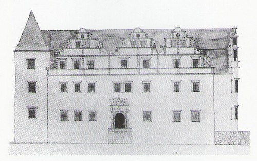 fasada zamku z początku XVIII wieku wg Stankiewicz 1986