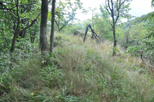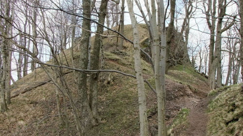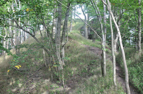 Widok na wzgórze zamkowe z miejsca, gdzie zaczyna się "podejście"