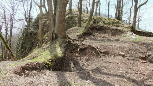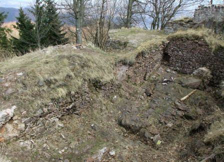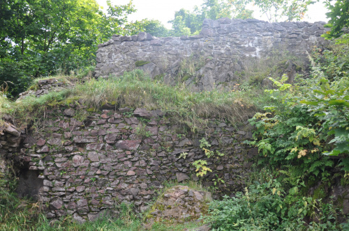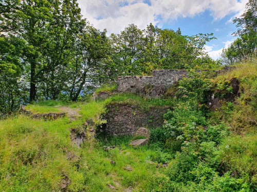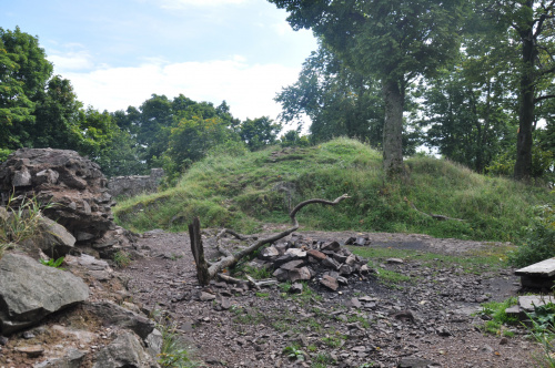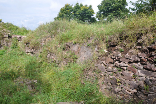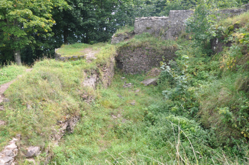 Fundamenty baszty na zamku dolnym widziane z zamku górnego