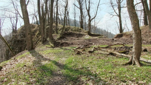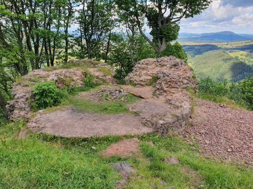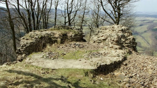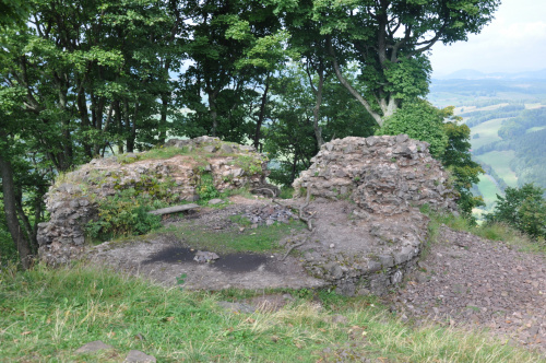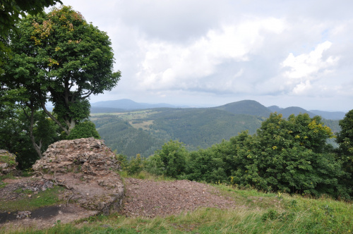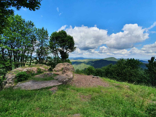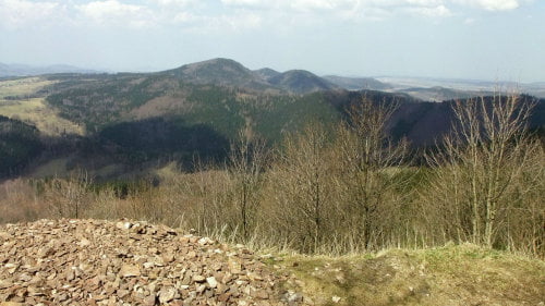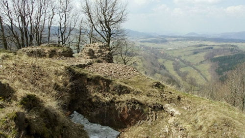 Z ruin zamku Radosno, które leżą po przeciwnej stronie schroniska jest to nieco ponad 3 km. (fot. kwiecień 2013).