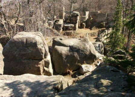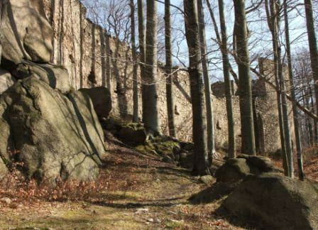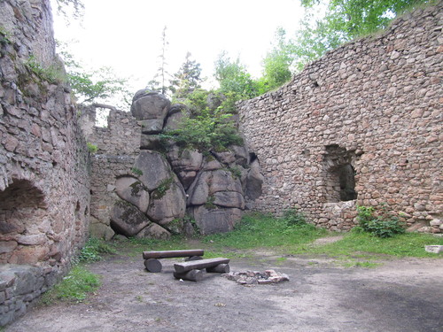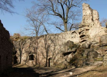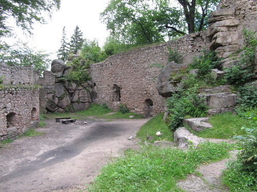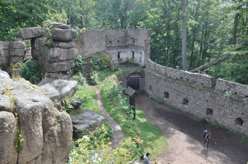 ten zamek położony jest na d*pnej górze i trzeba z miejsca w którym kończy się asfalt (ulica Zamkowa, zielony szlak turystyczny) dobry kwadrans drałować, żeby do niego dojść. Wokół za to cisza i spokój (fot. marzec 2011)