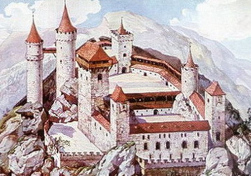 rekonstrukcja zamku w XVI wieku wg J.Serafina