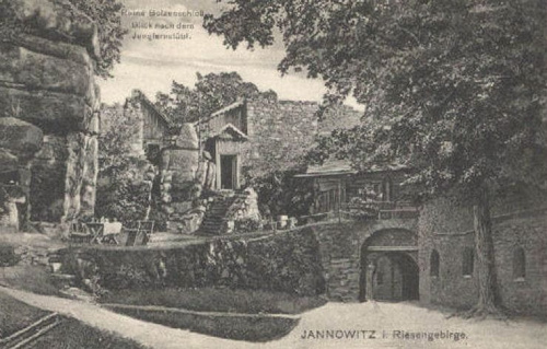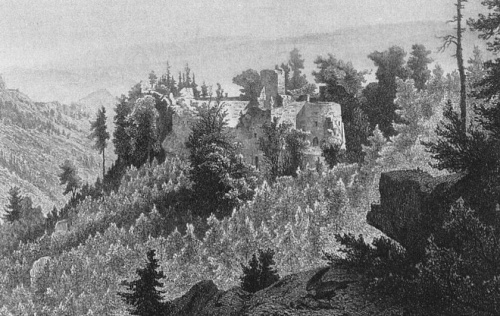 zamek na rycinie F. Schrollera w połowie XIX wieku