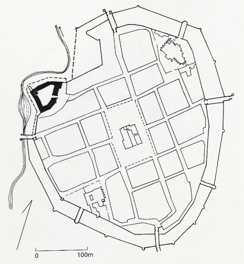 zamek na tle planu miasta wg J.Cempy 1975