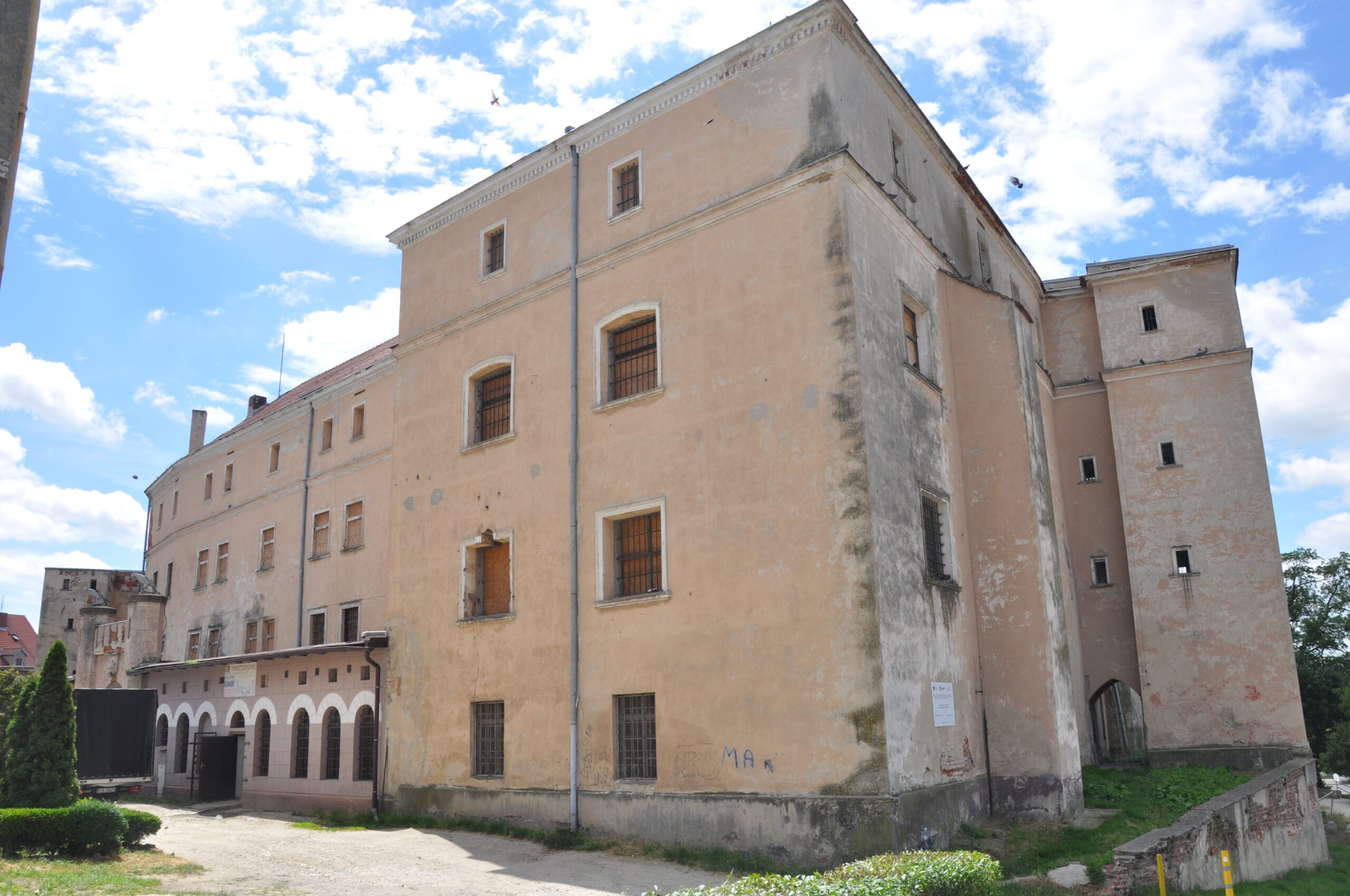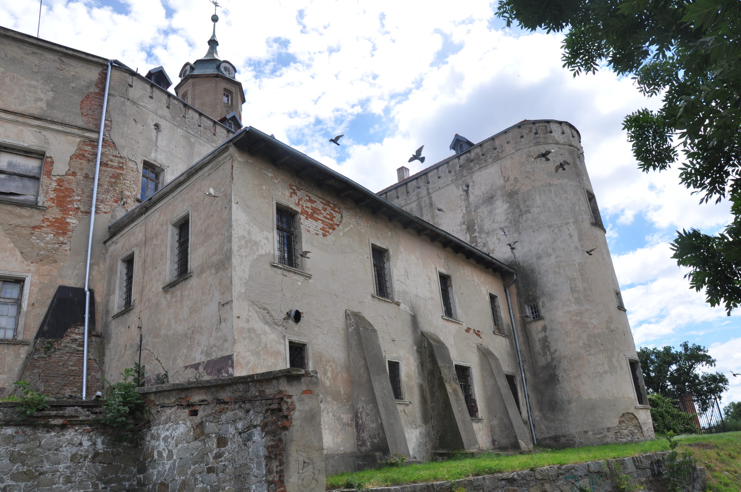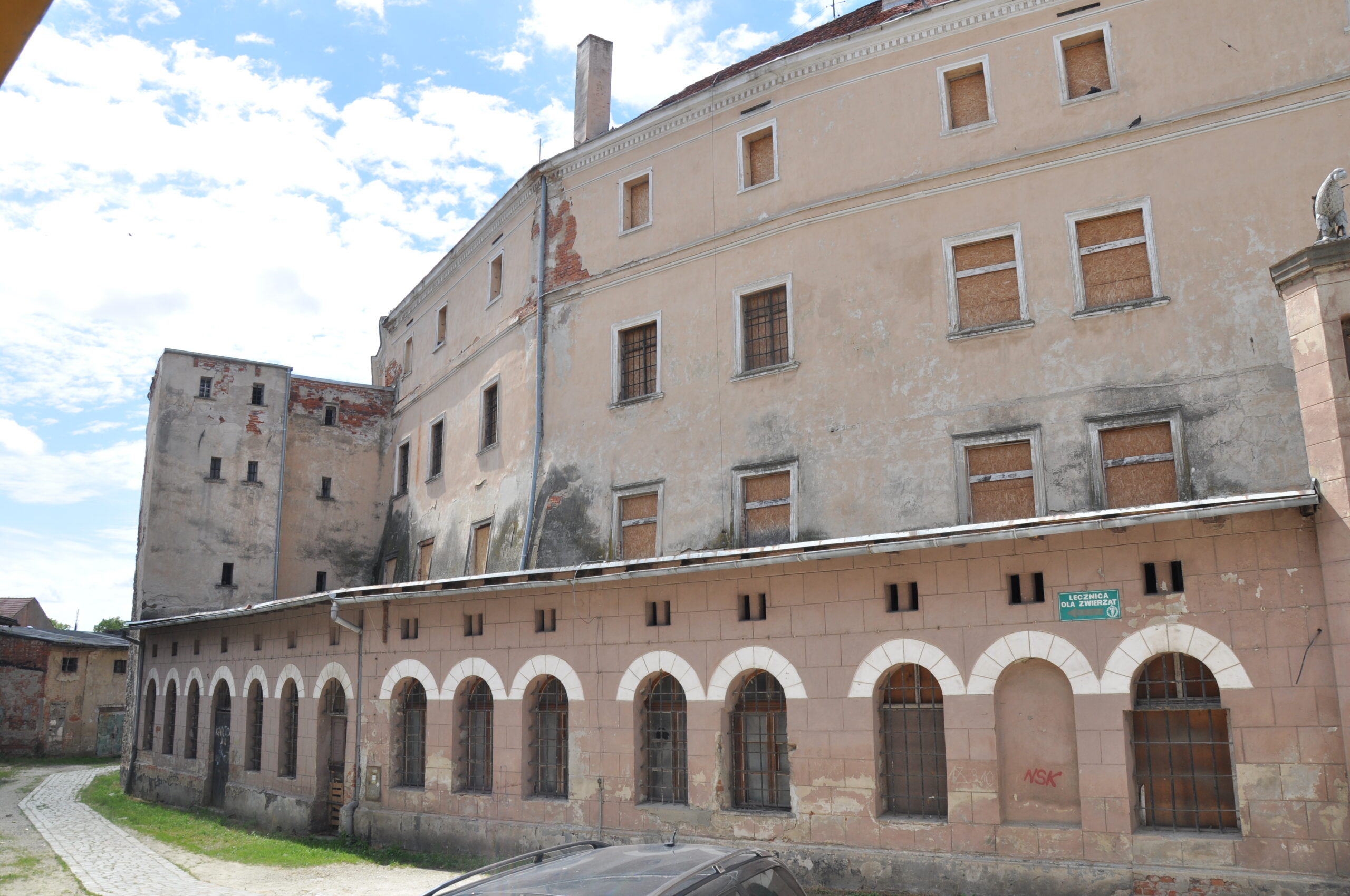 Duży zamek który niestety jest w złym stanie technicznym przez co straszy swym wyglądem.
