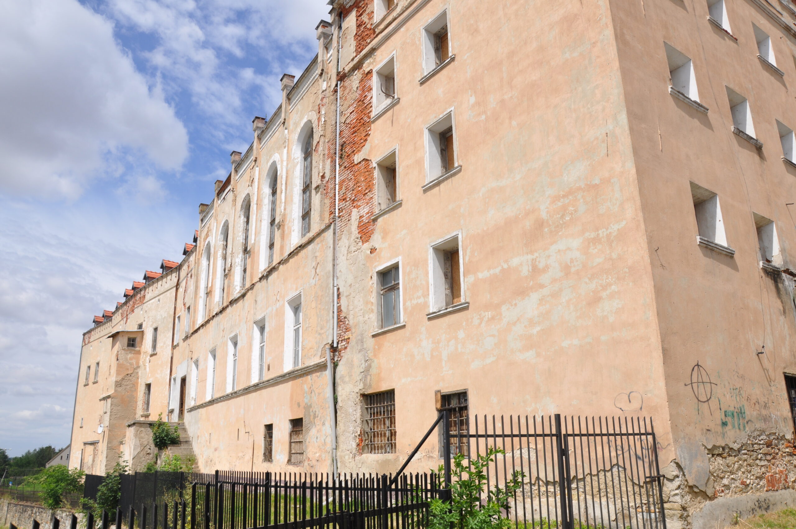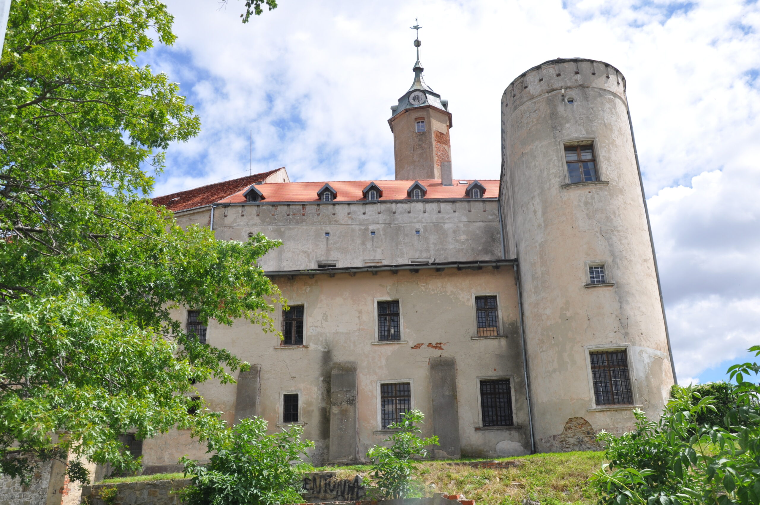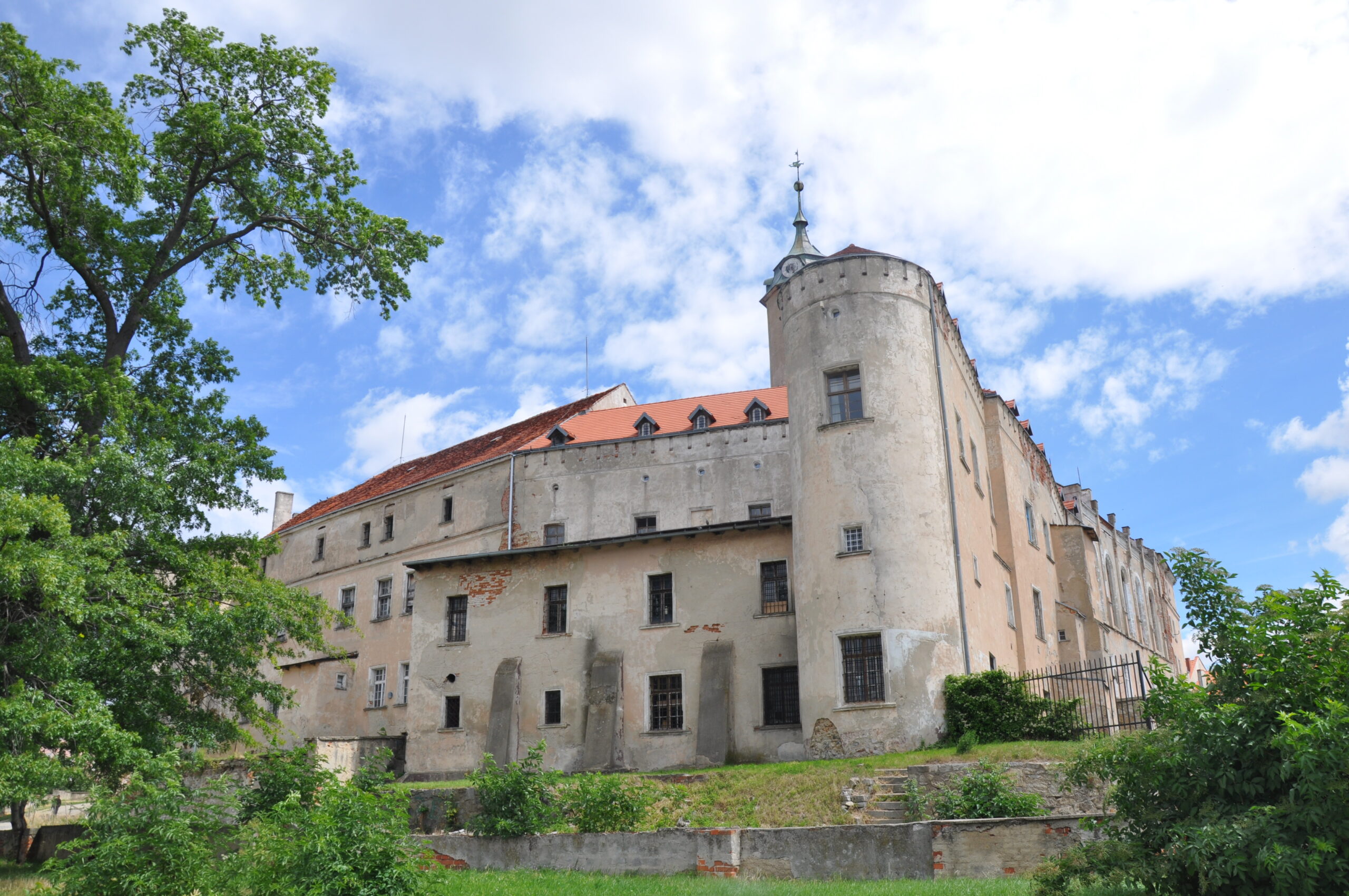 Duży zamek który niestety jest w złym stanie technicznym przez co straszy swym wyglądem.