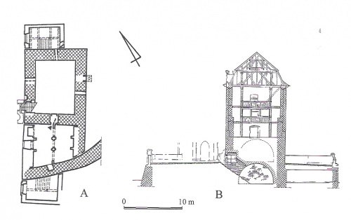 rzut parteru wieży oraz jej przekrój za M.Chorowską 2002