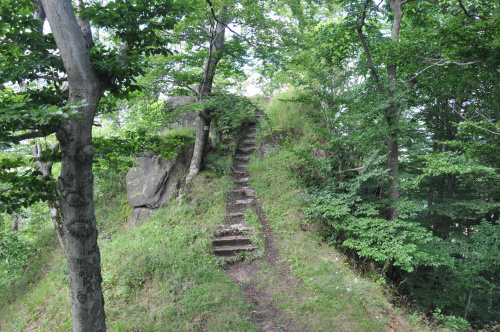 Jedno z bardziej urokliwych miejsc. Do zamku prowadzi zielony szlak turystyczny, można też podejść kawałek czerwonym rowerowym a potem na przełaj przez las wydeptaną ścieżką. Ta trasa jest o wiele bardziej stroma, ale i krótsza, podejście szlakiem zajęło mi dobre 20 min.