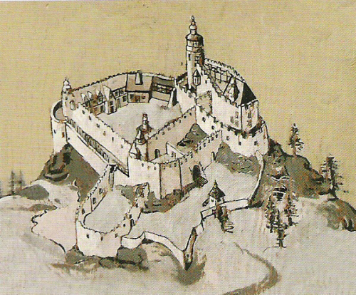 rekonstrukcja założenia z około 1400 roku wg.B.Guerquina 1974