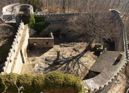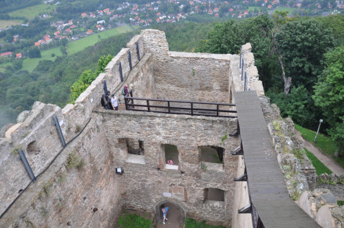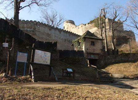 Ponieważ zamek jest na szczycie d*pnej góry zostawiamy auto gdziekolwiek w "mieście" i drałujemy 20 minut pod górę czerwonym szlakiem, aż się zmęczymy. A na końcu płacimy 3 zł za zwiedzanie. W marcu 2011 na zamku byłem sam.