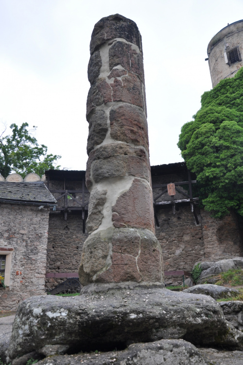 Budowla obronna, pierwotnie wzniesiona przez Bolka II, została zbudowana na planie czworokąta o długości ok. 20 m i szerokości 10 m. Północno-zachodnia część została całkowicie zajęta przez budynek mieszkalny, od którego na wschód ciągnął się otoczony murami dziedziniec. Całość od wschodu zamykała okrągła wieża obronna (stołp) i brama wjazdowa po stronie północnej. Około 1405, nowy właściciel Gotsch Schaff ufundował kaplicę św. Jerzego i św. Katarzyny, która została dobudowana w formie wykusza nad bramą wjazdową. Jeszcze w pierwszej połowie XV w. dziedziniec zamku został znacznie poszerzony, a na środku stanął kamienny pręgierz zachowany do dziś (datowany jest na rok 1410). Kolejne rozbudowy nastąpiły na początku XVI wieku. Od północno-wschodniej strony powstał rozległy zamek dolny, który został zajęty głównie przez budynki gospodarcze. Pomieszczenia dla załogi oraz kuchnia wraz z piekarnią przylegały do wschodniej części murów, a w północnym narożniku stanęła sala rozpraw. Na terenie warowni nie było możliwości wykopania studni, dlatego na dziedzińcu dolnym oraz górnym zostały umiejscowione skalne cysterny zbierające wodę deszczową. W 1560 wybudowano wydłużoną północną basteję i mniej więcej w tym samym czasie główną bramę z mostem zwodzonym. Tuż przy bramie usytuowano stajnię, a mury wzbogacono renesansową attyką. W latach 40. XVII wieku, kiedy zamek był zajęty przez wojska cesarskie, dokonano dalszych umocnień twierdzy. W północno-zachodniej części wzniesiono bastion, tworząc kolejną linię murów obronnych oraz basztę bramną od zachodniej strony. Na dziedzińcu powyżej, obok bramy głównej, wybudowano kwaterę dla komendanta.